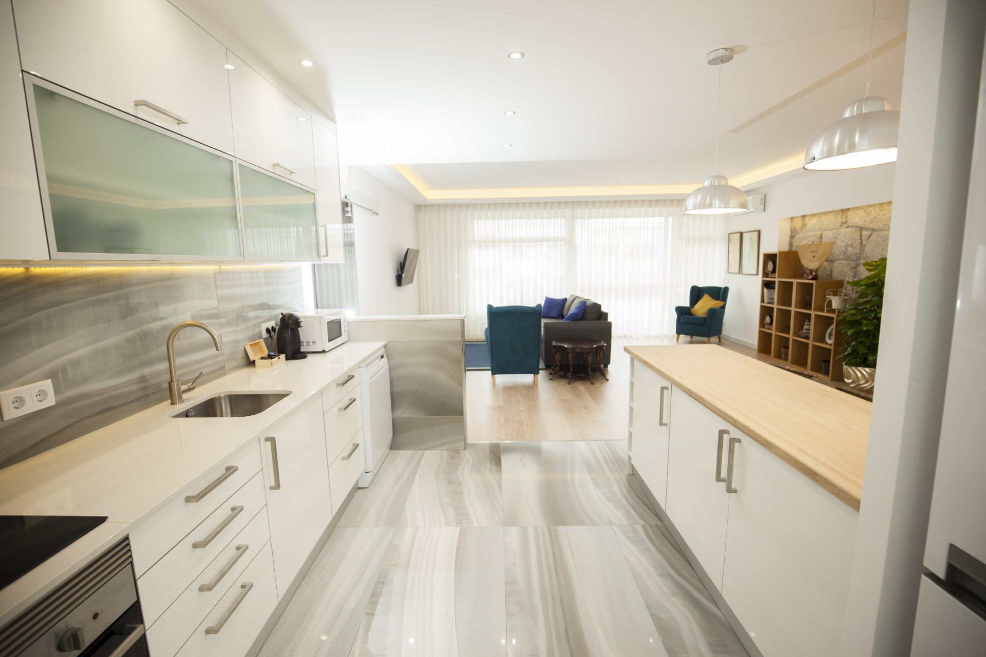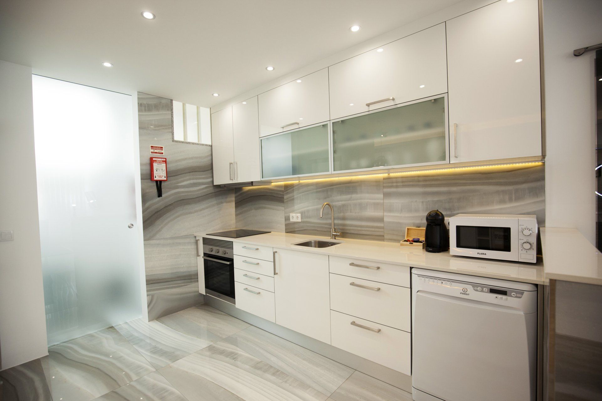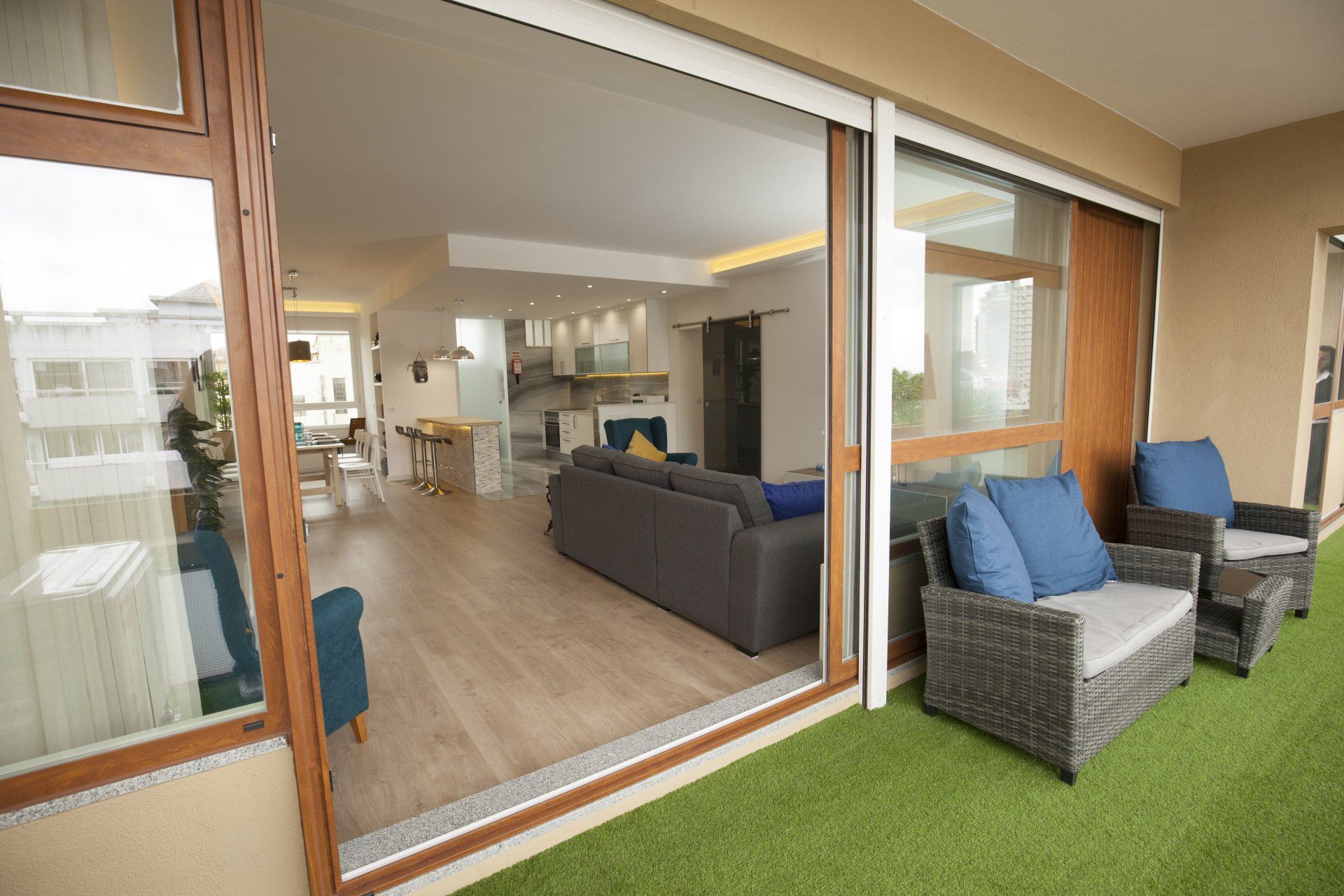 Nuestro alojamiento cuenta con un salón muy amplio con mucha luz natural, grandes aberturas acristaladas que se comunican con un enorme balcón orientado al sur, con exposición al sol todo el día.
